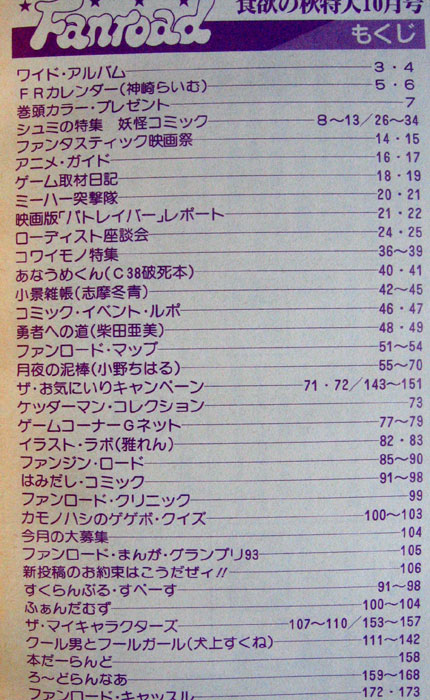 Fanroad 1993年食欲野秋特大10月号 ピンナップ・カレンダー パトレイバー/妖怪コミック/東京ファンタスティック映画祭/柴田亜美/犬上すくね/他